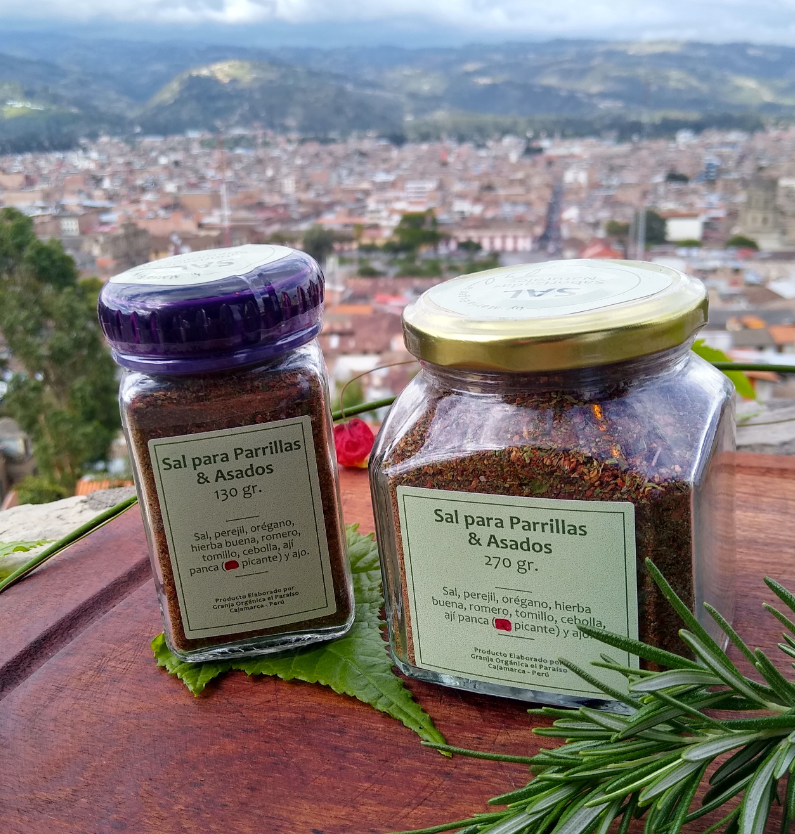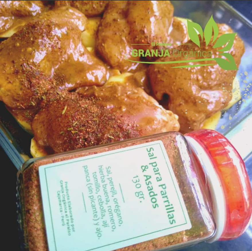 Sal de maras, Ajo, Perejil, Orégano, Hierba buena, Romero, Tomillo, Cebolla y Paprika